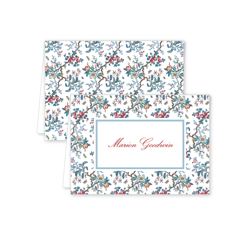 25 personalized notecards sized 3.5 x 4.875 inches folded on 120 lb Mohawk Eggshell White Paper