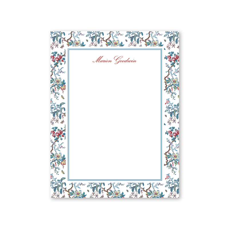 100 sheet personalized notepad sized 4.25 x 5.5 inches on 80 lb paper