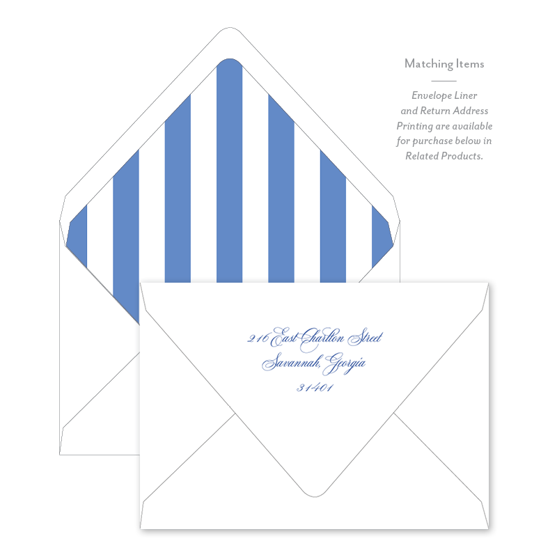 Select your order quantity from the dropbox menu below and check your total. Enter the personalization text for your notecard in the “Note” box below. Click Add to Cart. You will receive a proof notification via email and text message within 3 to 5 business days.Each card comes with one free BLANK Eggshell White envelope.