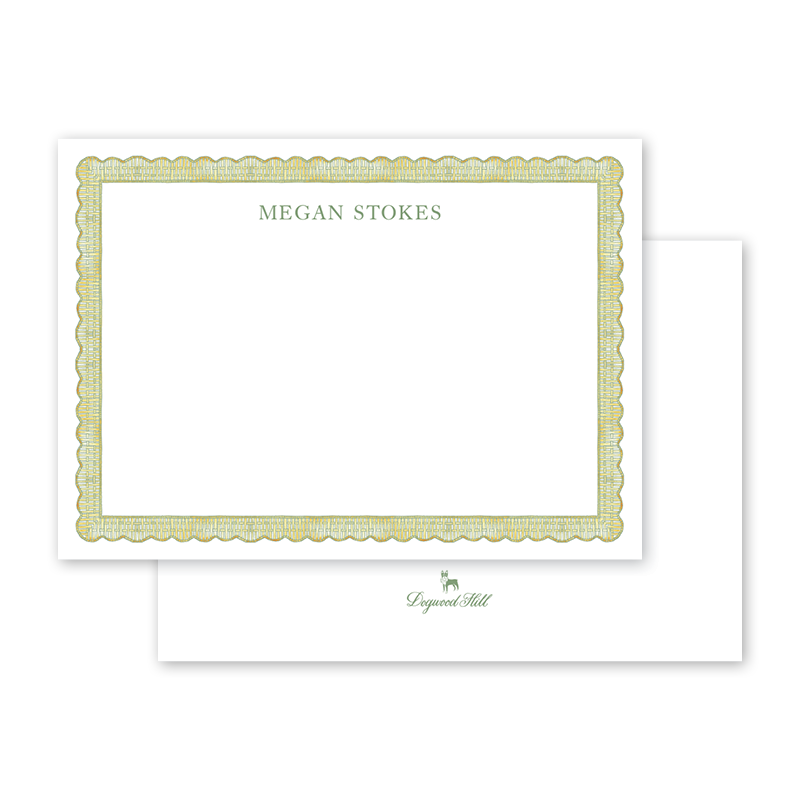Select your order quantity from the dropbox menu below and check your total. Enter the personalization text for your notecard in the “Note” box below. Click Add to Cart. You will receive a proof notification via email and text message within 3 to 5 business days.Each card comes with one free BLANK Eggshell White envelope.