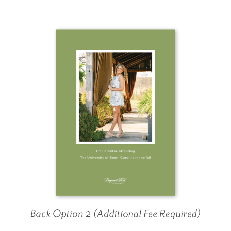 Select your order quantity from the dropdown menu below and check your total. Then click the Customize and Add to Cart button to create your card and add it to your cart.Want to add up to 4 photos on the back or inside of your card? Click here to add the fee to your cart.
