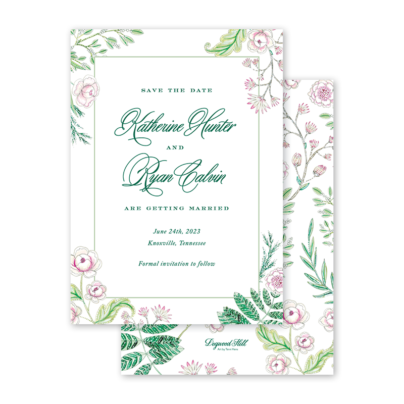 Select your order quantity from the dropdown menu below and check your total. Enter the text for your Save the Date in the “Note” box below. Click Add to Cart. Your wording does not have to match the sample product wording and can be customized for your Save the Date. You will receive a proof notification via email and text message within 3 to 5 business days.If your Save the Date includes a photo, please email a high resolution image along with your order number to weddings@dogwood-hill.com.