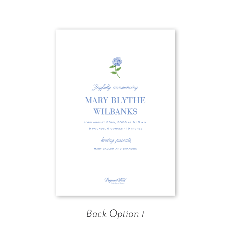 Cavalier Garden Hydrangea Birth Announcement