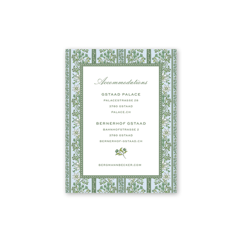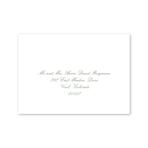 Each invitation comes with a blank inner and outer envelope and return address printing on the outer envelope flap. Envelope liner and recipient address printing for each envelope may be purchased for an additional cost on the main collection page.