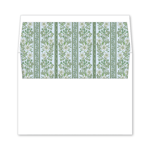 Each invitation comes with an inner and outer envelope and return address printing on the outer envelope flap. Envelope liner may be purchased for an additional cost on the main collection page.