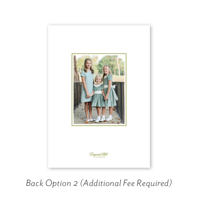Select your order quantity from the dropdown menu below and check your total. Then click the Customize and Add to Cart button to create your card and add it to your cart.Want to add up to 4 photos on the back or inside of your card? Click here to add the fee to your cart.