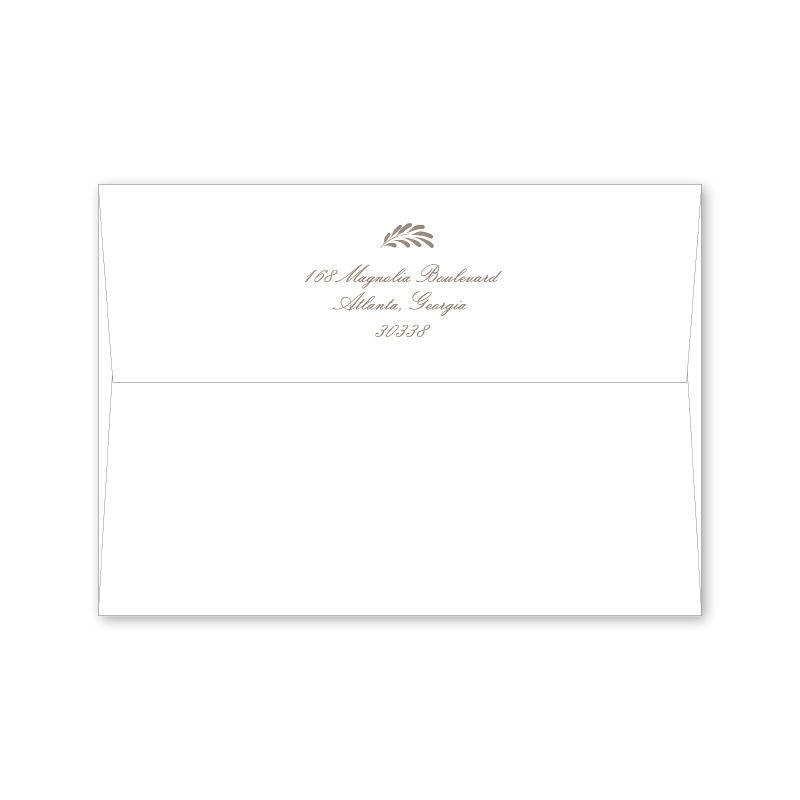 Each invitation comes with a blank inner and outer envelope and return address printing on the outer envelope flap. Envelope liner and recipient address printing for each envelope may be purchased for an additional cost on the main collection page.