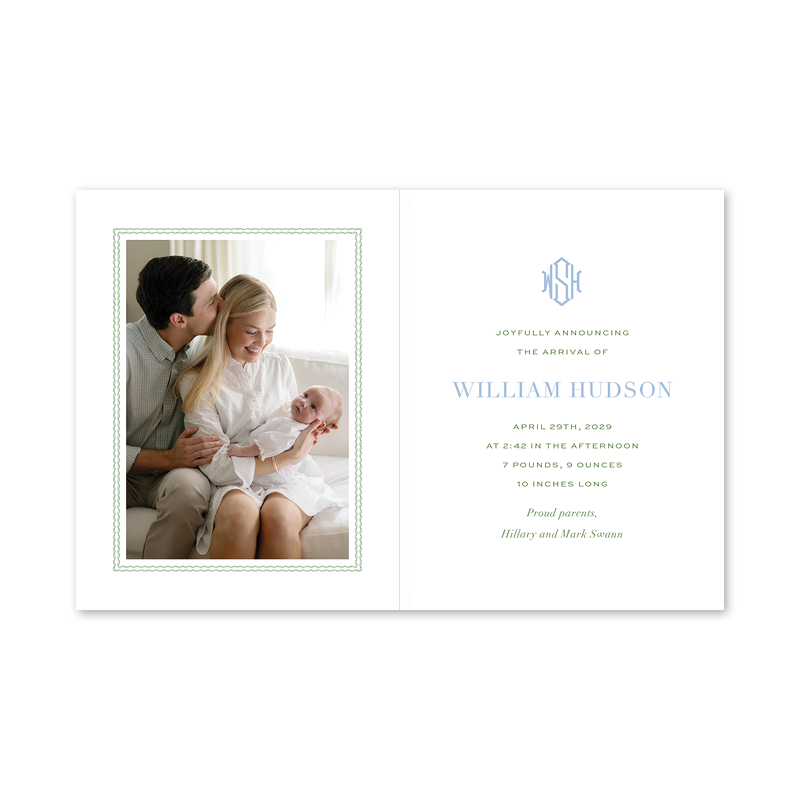 Christine's Hydrangeas Blue Folded Birth Announcement