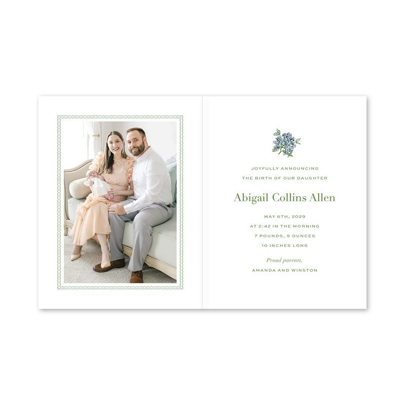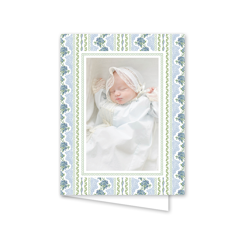 Christine's Hydrangeas Stripes Folded Birth Announcement