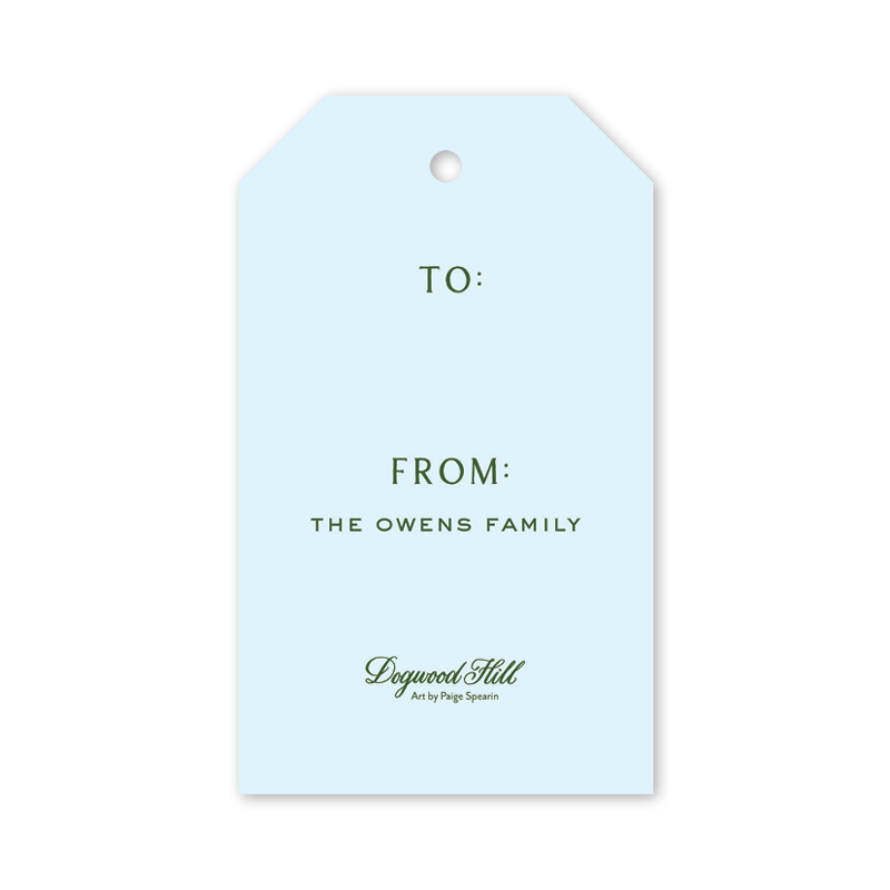 Select your gift tag quantity from the dropdown menu below and check your total. Then click the Customize and Add to Cart button to create your gift tag and add it to your cart.