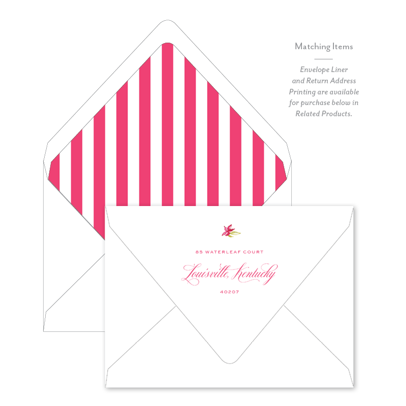 Select your order quantity from the dropbox menu below and check your total. Enter the personalization text for your notecard in the “Note” box below. Click Add to Cart. You will receive a proof notification via email and text message within 3 to 5 business days.Each card comes with one free BLANK Eggshell White envelope.