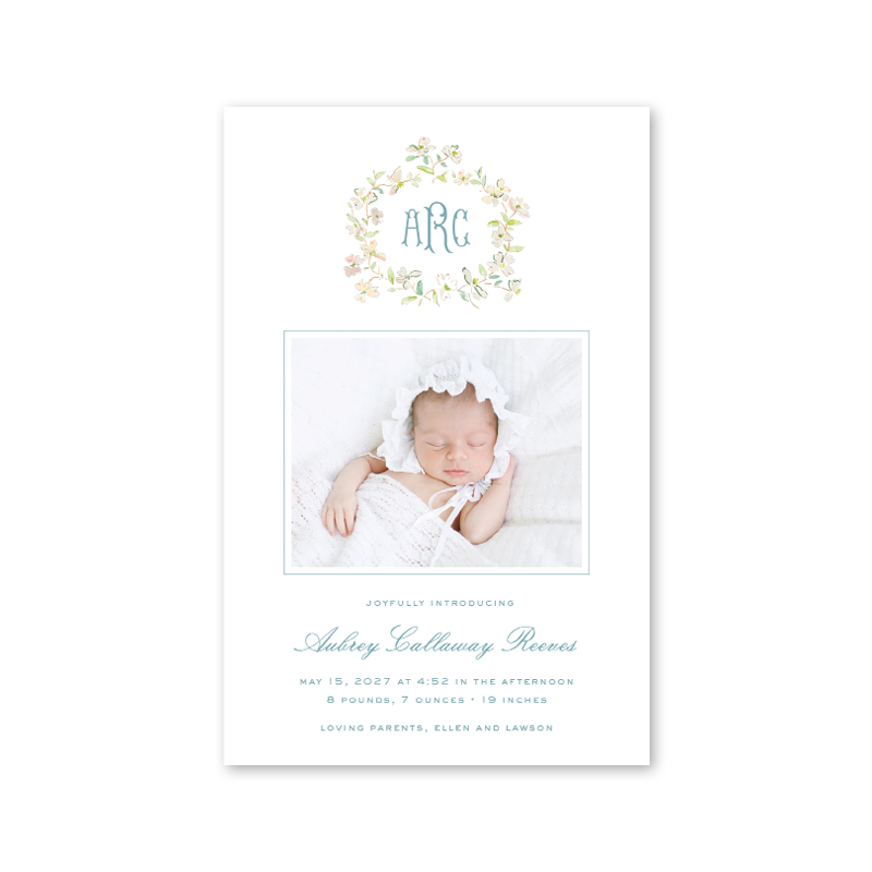 Dogwood Garden Wreath Birth Announcement