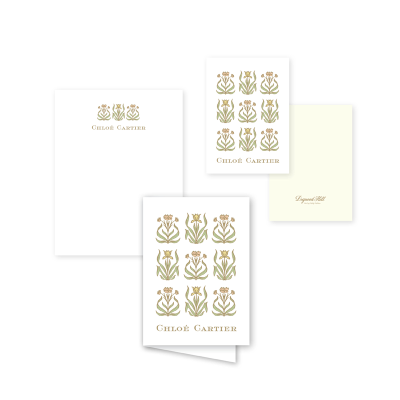 25 personalized notecards sized 3.5 x 4.875 inches folded on 120 lb Mohawk Eggshell White Paper