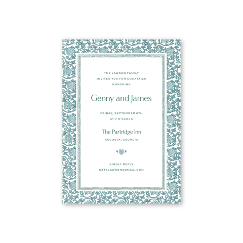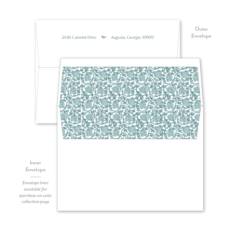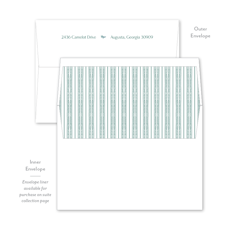 Each invitation comes with an inner and outer envelope and return address printing on the outer envelope flap. Envelope liner may be purchased for an additional cost on the main collection page.