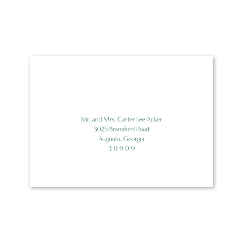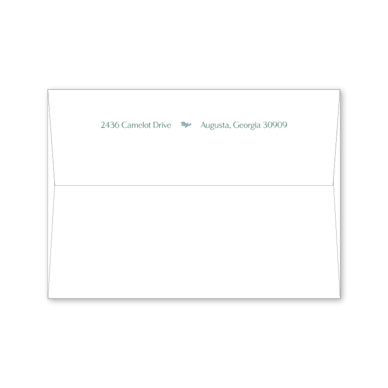 Each invitation comes with a blank inner and outer envelope and return address printing on the outer envelope flap. Envelope liner and recipient address printing for each envelope may be purchased for an additional cost on the main collection page.