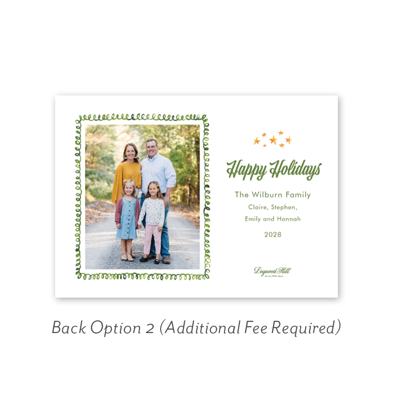 Want to add up to 4 photos on the back or inside of your card? Click here to add the fee to your cart.