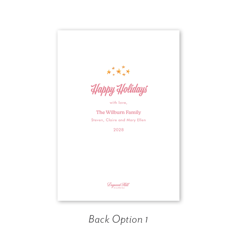 Select your order quantity from the dropdown menu below and check your total. Then click the Customize and Add to Cart button to create your card and add it to your cart.Want to add up to 4 photos on the back or inside of your card? Click here to add the fee to your cart.
