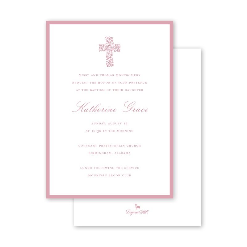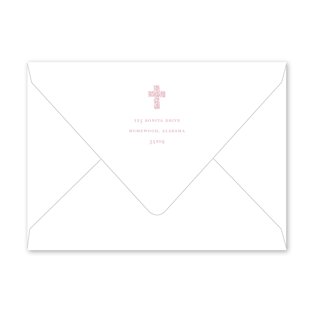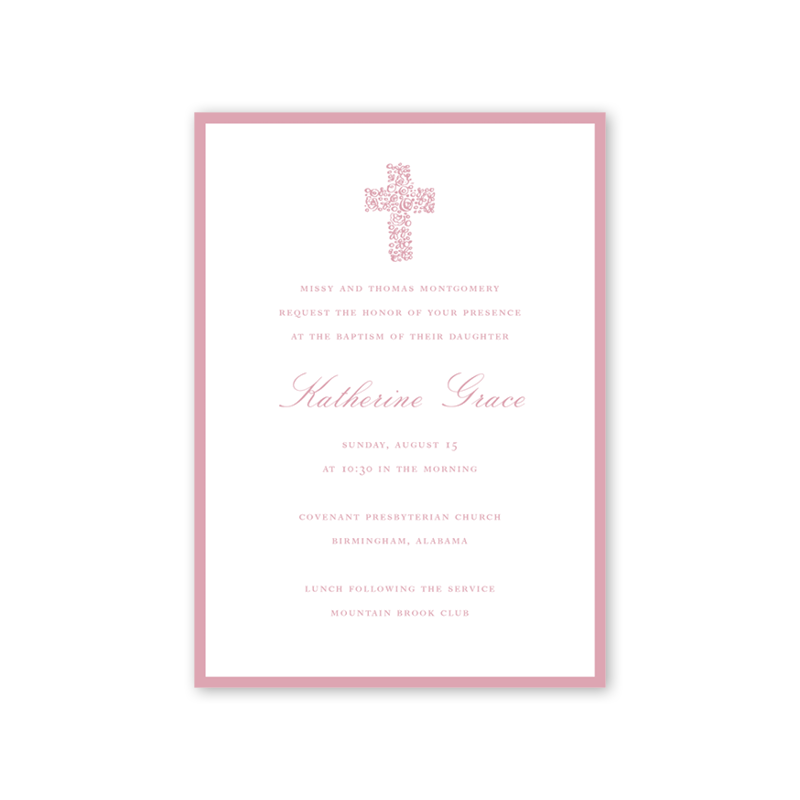 Floral Cross Pink Baptism Invitation