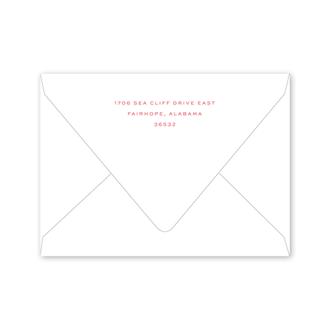 Select your order quantity from the dropbox menu below and check your total. Enter the personalization text for your notecard in the “Note” box below. Click Add to Cart. You will receive a proof notification via email and text message within 3 to 5 business days.Each card comes with one free BLANK Eggshell White envelope.