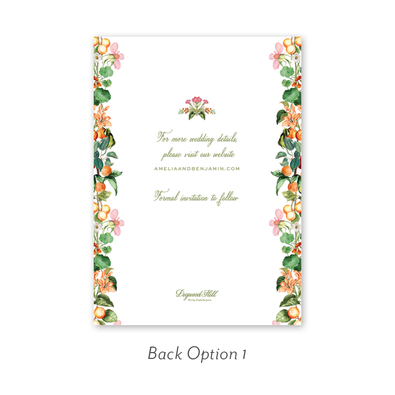 Select your order quantity from the dropdown menu below and check your total. Enter the text for your Save the Date in the “Note” box below. Click Add to Cart. Your wording does not have to match the sample product wording and can be customized for your Save the Date. You will receive a proof notification via email and text message within 3 to 5 business days.If your Save the Date includes a photo, please email a high resolution image along with your order number to weddings@dogwood-hill.com.
