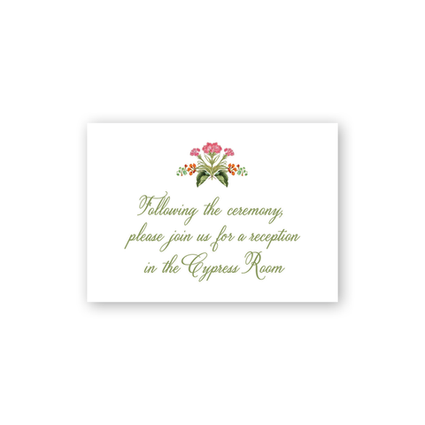 Each invitation comes with a blank inner and outer envelope and return address printing on the outer envelope flap. Envelope liner and recipient address printing for each envelope may be purchased for an additional cost on the main collection page.