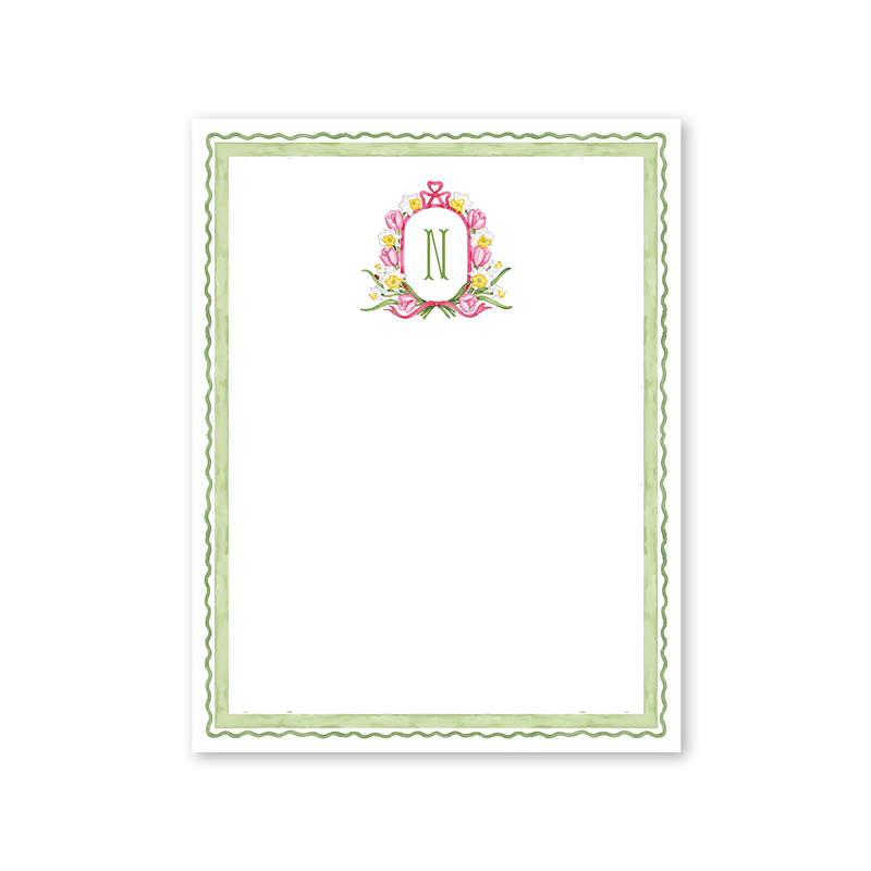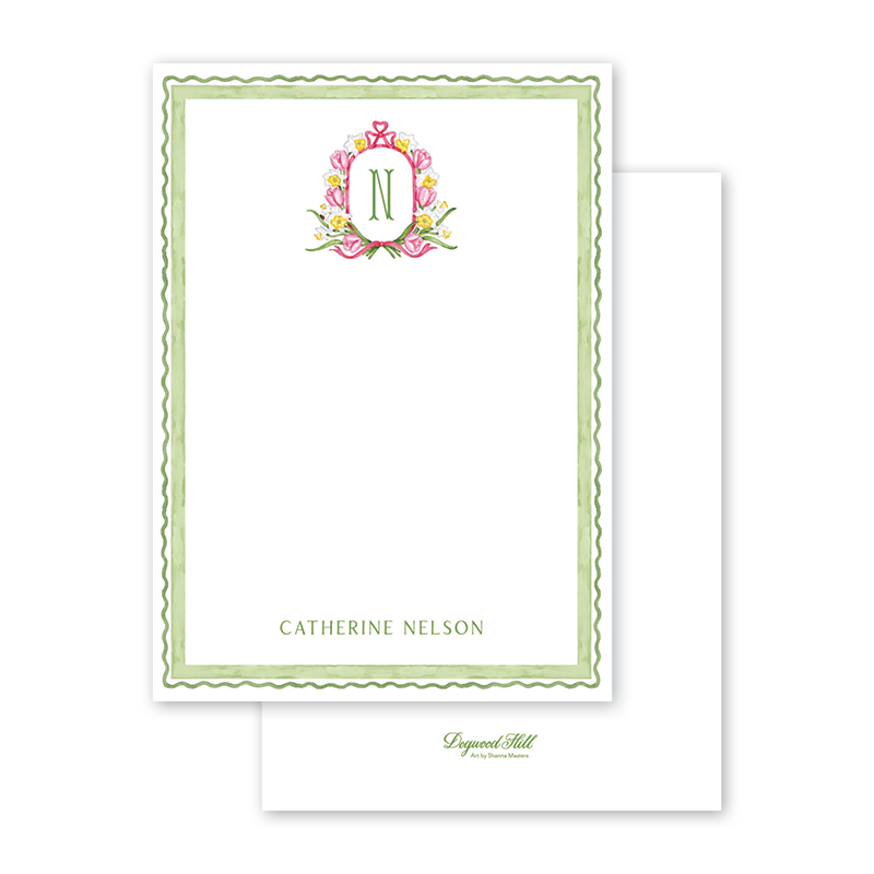 75 sheet personalized notepad sized 4.25 x 5.5 inches on 100 lb Mohawk Eggshell White Paper