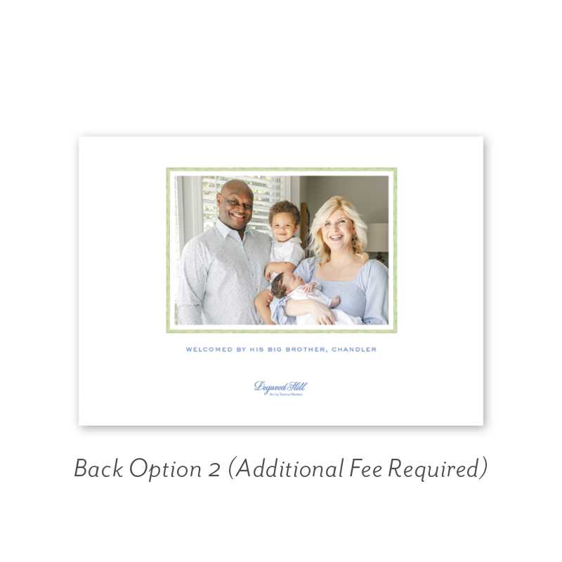 Want to add up to 4 photos on the back or inside of your card? Click here to add the fee to your cart.