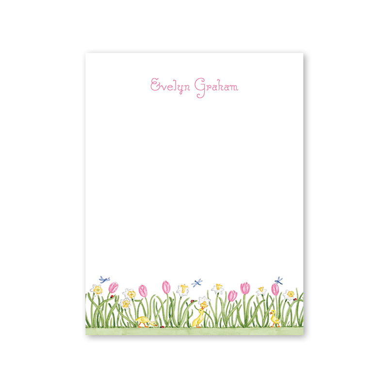 75 sheet personalized notepad sized 4.25 x 5.5 inches on 100 lb Mohawk Eggshell White Paper