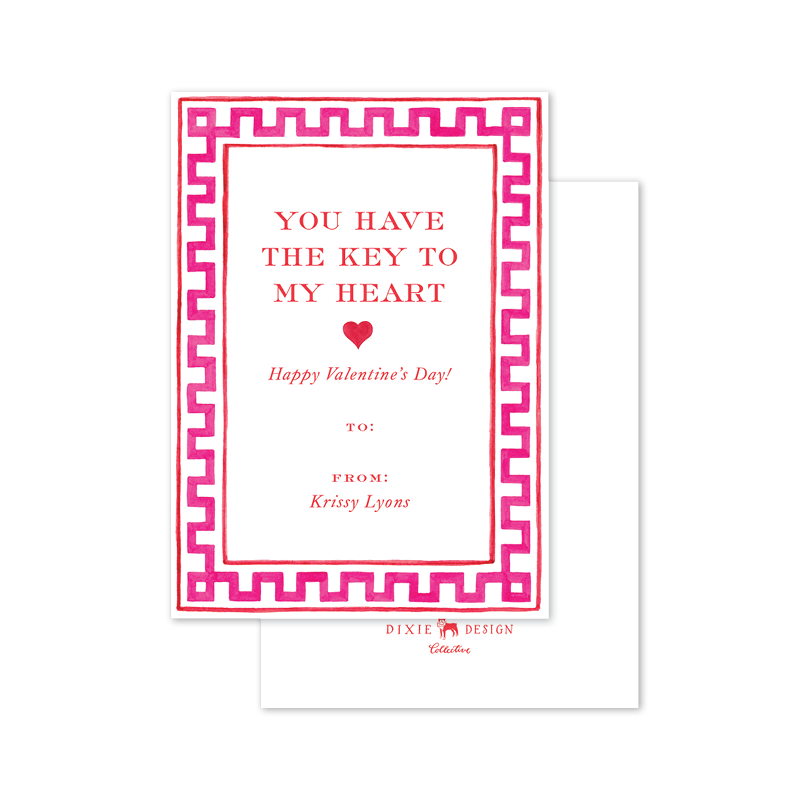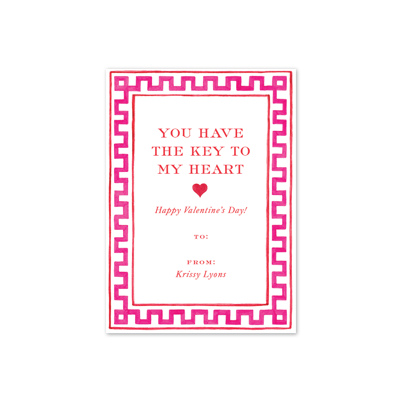 Greek Key Pink Heart Valentine