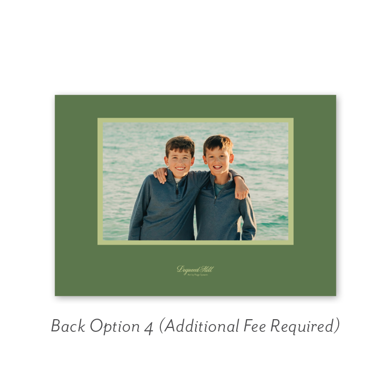 Select your order quantity from the dropdown menu below and check your total. Then click the Customize and Add to Cart button to create your card and add it to your cart.Want to add up to 4 photos on the back or inside of your card? Click here to add the fee to your cart.