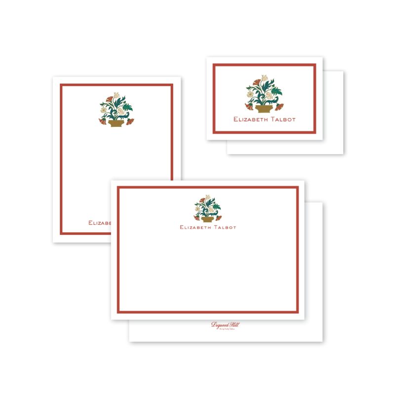 25 personalized notecards sized 4.5 x 6.25 inches on 120 lb Mohawk Eggshell White Paper