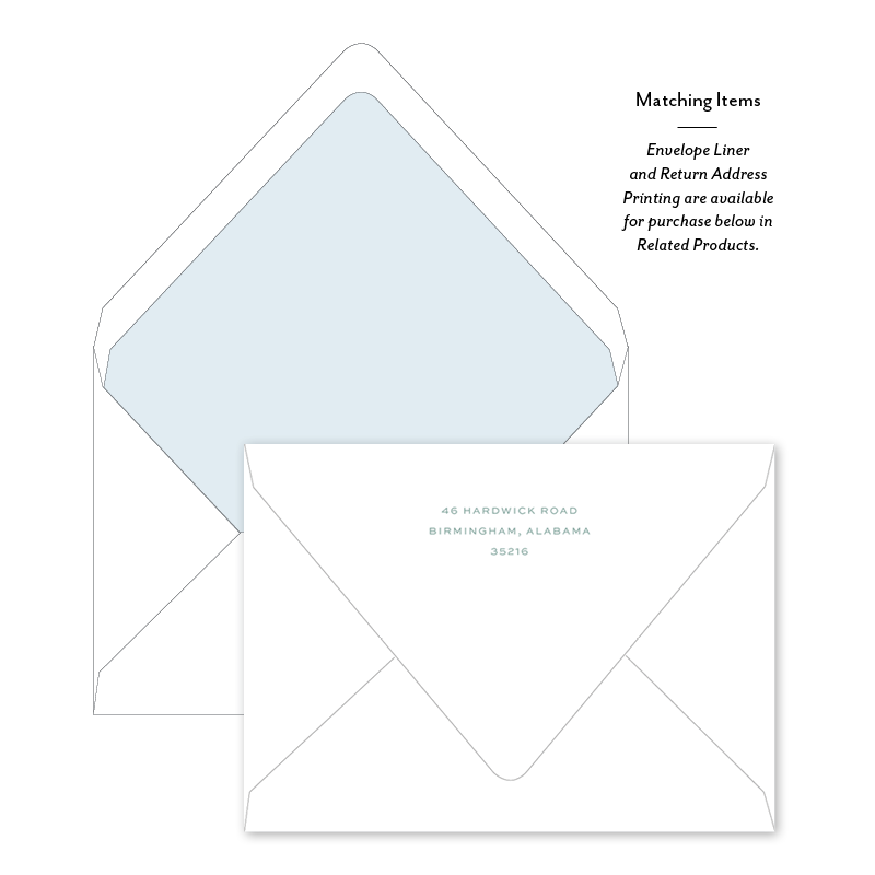 Select your order quantity from the dropbox menu below and check your total. Enter the personalization text for your notecard in the “Note” box below. Click Add to Cart. You will receive a proof notification via email and text message within 3 to 5 business days.Each card comes with one free BLANK Eggshell White envelope.