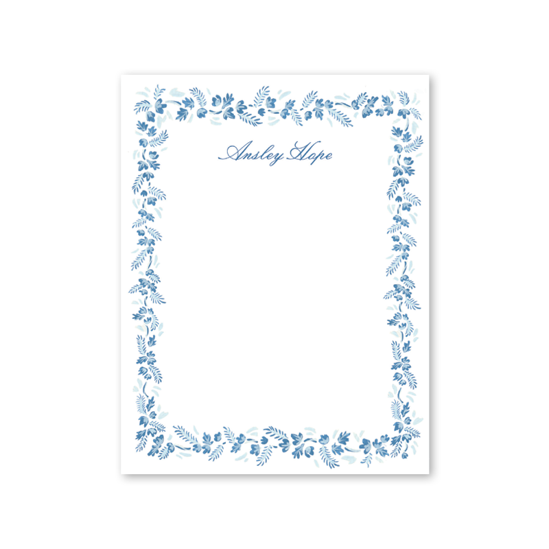 100 sheet personalized notepad sized 4.25 x 5.5 inches on 80 lb paper