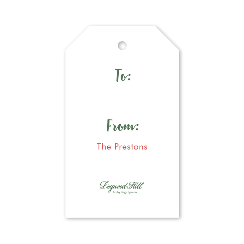 Select your gift tag quantity from the dropdown menu below and check your total. Then click the Customize and Add to Cart button to create your gift tag and add it to your cart.