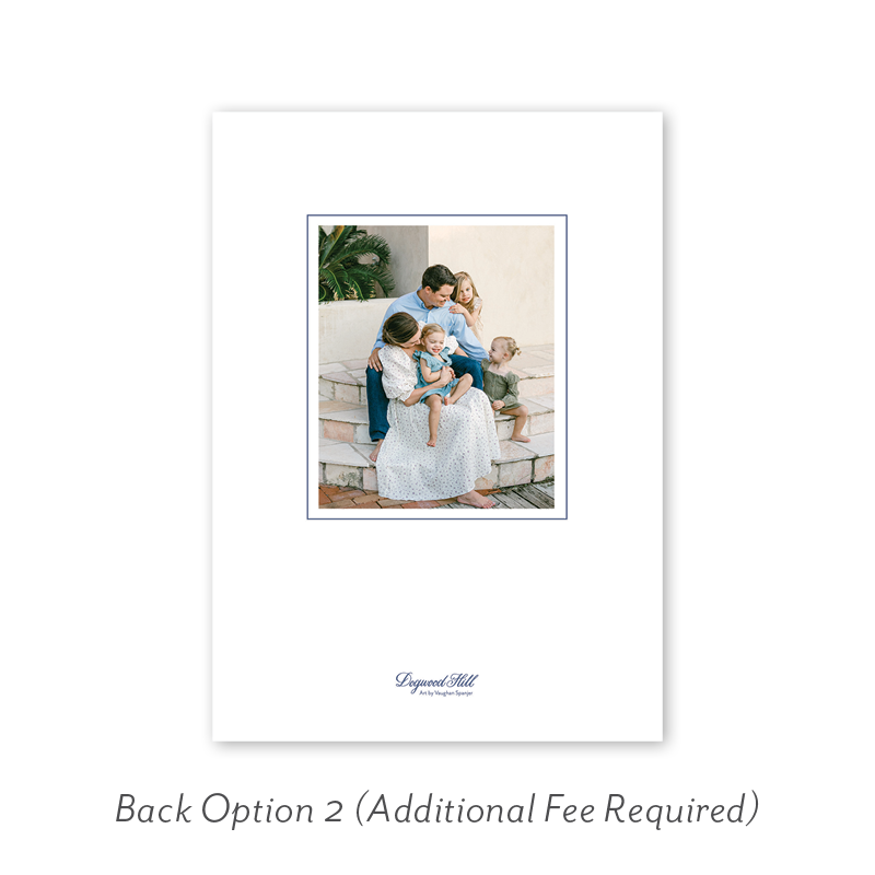 Select your order quantity from the dropdown menu below and check your total. Then click the Customize and Add to Cart button to create your card and add it to your cart.Want to add up to 4 photos on the back or inside of your card? Click here to add the fee to your cart.