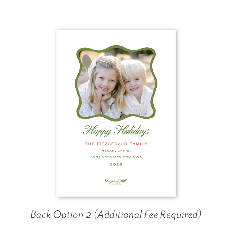 Want to add up to 4 photos on the back or inside of your card? Click here to add the fee to your cart.