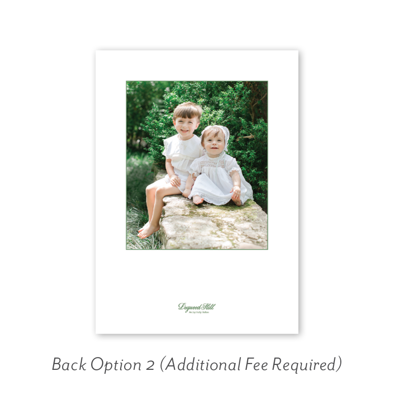 Select your order quantity from the dropdown menu below and check your total. Then click the Customize and Add to Cart button to create your card and add it to your cart.Want to add up to 4 photos on the back or inside of your card? Click here to add the fee to your cart.