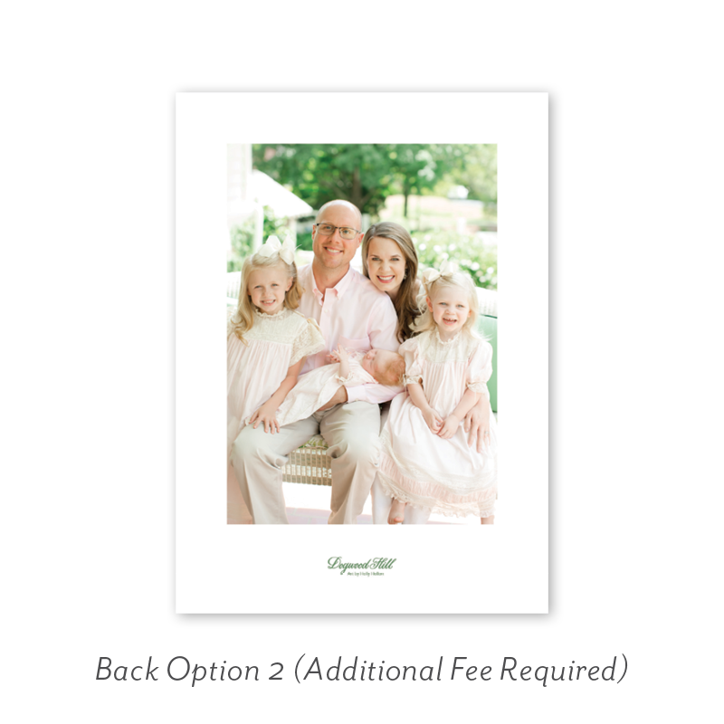 Want to add up to 4 photos on the back or inside of your card? Click here to add the fee to your cart.