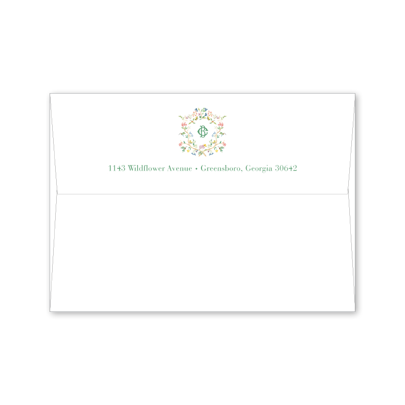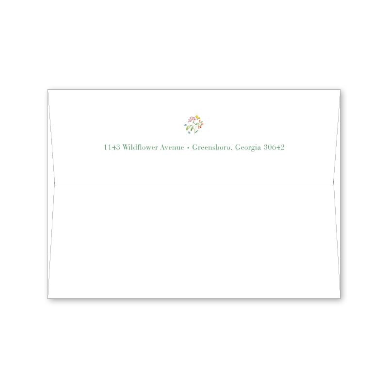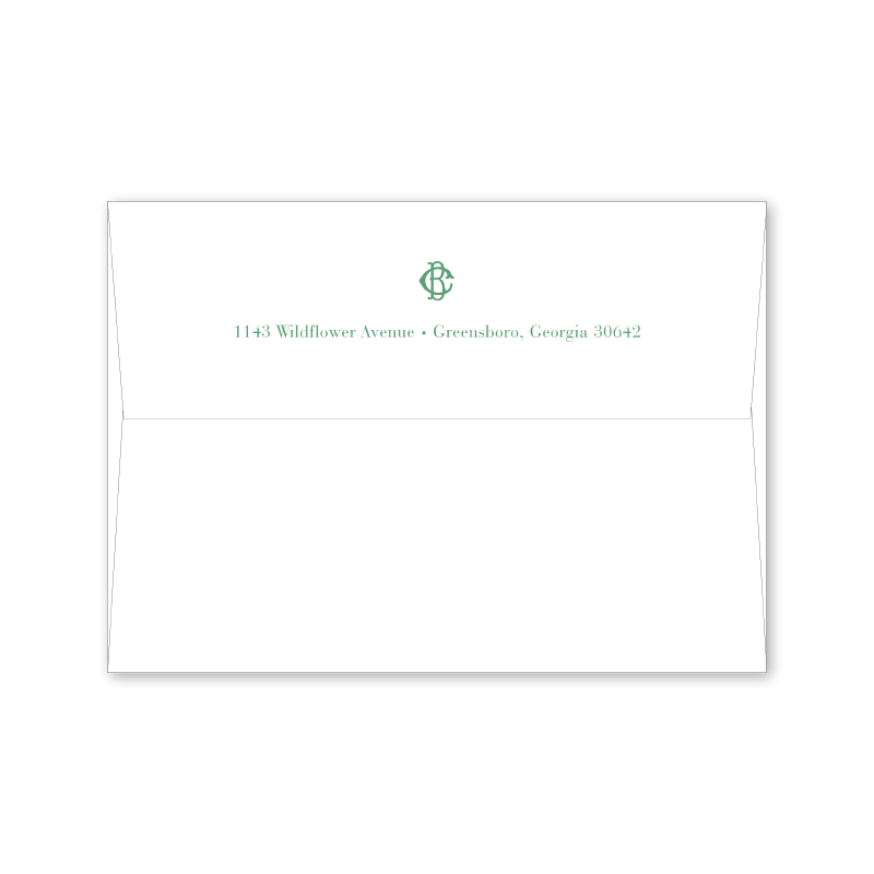 Each invitation comes with a blank inner and outer envelope and return address printing on the outer envelope flap. Envelope liner and recipient address printing for each envelope may be purchased for an additional cost on the main collection page.