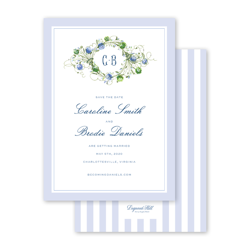 Select your order quantity from the dropdown menu below and check your total. Enter the text for your Save the Date in the “Note” box below. Click Add to Cart. Your wording does not have to match the sample product wording and can be customized for your Save the Date. You will receive a proof notification via email and text message within 3 to 5 business days.If your Save the Date includes a photo, please email a high resolution image along with your order number to weddings@dogwood-hill.com.