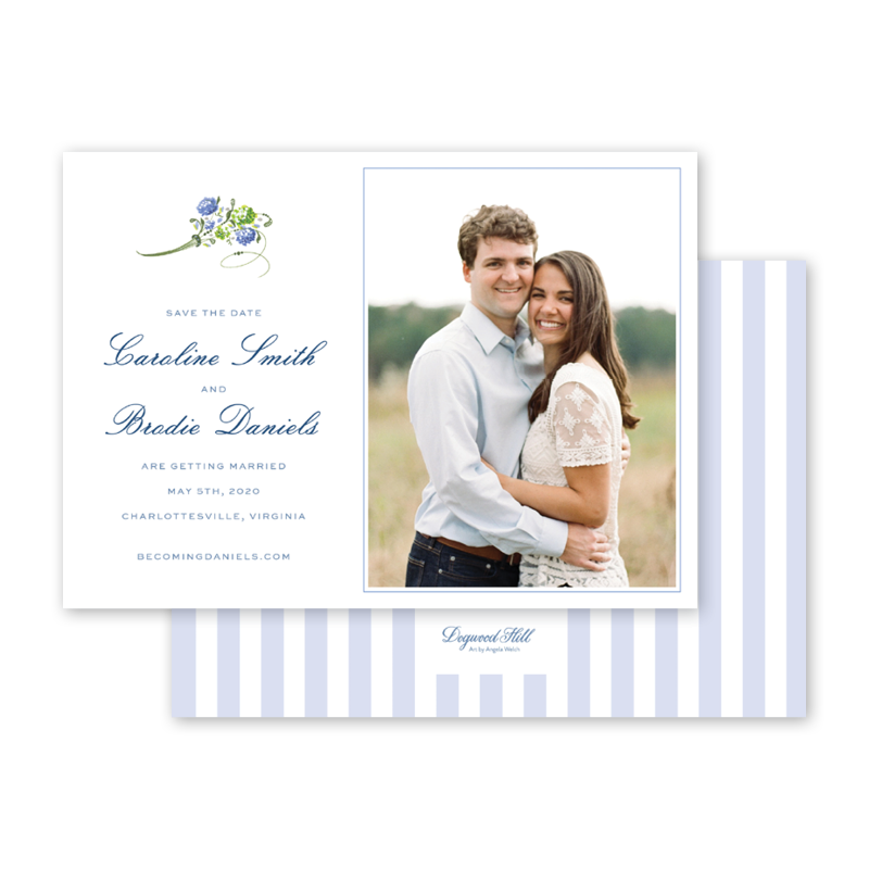 Select your order quantity from the dropdown menu below and check your total. Enter the text for your Save the Date in the “Note” box below. Click Add to Cart. Your wording does not have to match the sample product wording and can be customized for your Save the Date. You will receive a proof notification via email and text message within 3 to 5 business days.If your Save the Date includes a photo, please email a high resolution image along with your order number to weddings@dogwood-hill.com.