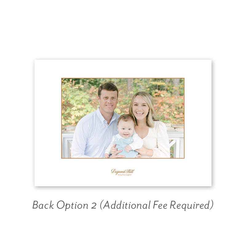 Select your order quantity from the dropdown menu below and check your total. Then click the Customize and Add to Cart button to create your card and add it to your cart.Want to add up to 4 photos on the back or inside of your card? Click here to add the fee to your cart.