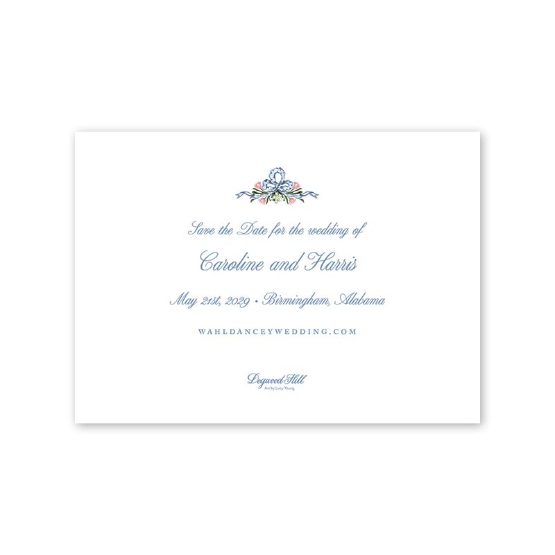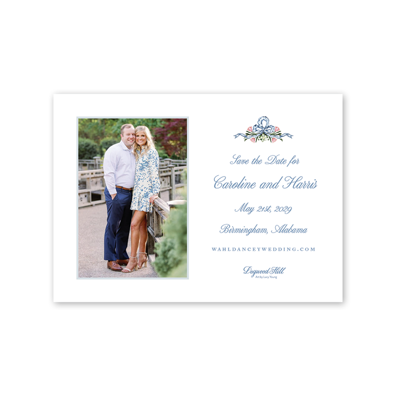 Select your order quantity from the dropdown menu below and check your total. Enter the text for your Save the Date in the “Note” box below. Click Add to Cart. Your wording does not have to match the sample product wording and can be customized for your Save the Date. You will receive a proof notification via email and text message within 3 to 5 business days.If your Save the Date includes a photo, please email a high resolution image along with your order number to weddings@dogwood-hill.com.