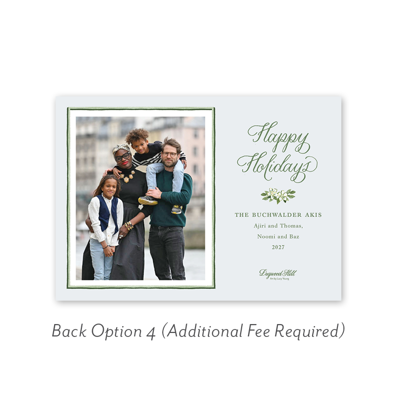 Select your order quantity from the dropdown menu below and check your total. Then click the Customize and Add to Cart button to create your card and add it to your cart.Want to add up to 4 photos on the back or inside of your card? Click here to add the fee to your cart.