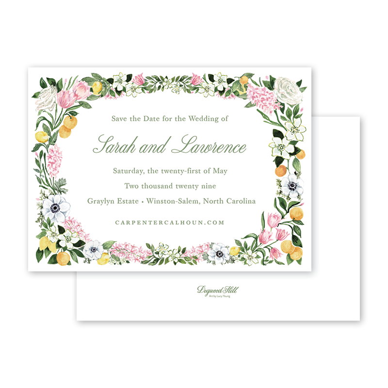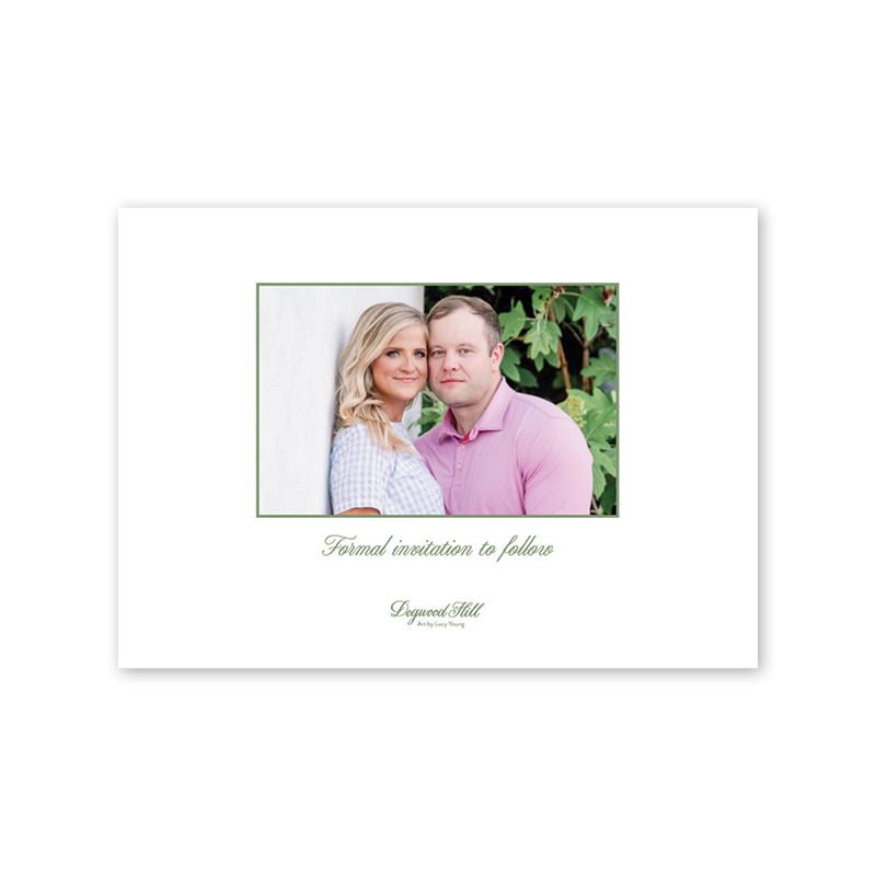 Select your order quantity from the dropdown menu below and check your total. Enter the text for your Save the Date in the “Note” box below. Click Add to Cart. Your wording does not have to match the sample product wording and can be customized for your Save the Date. You will receive a proof notification via email and text message within 3 to 5 business days.If your Save the Date includes a photo, please email a high resolution image along with your order number to weddings@dogwood-hill.com.