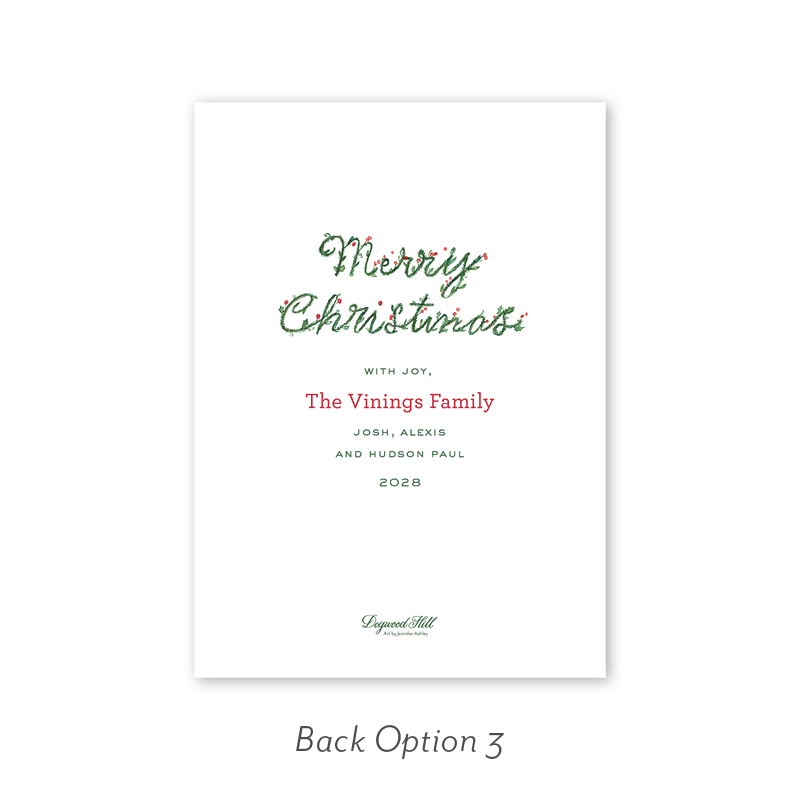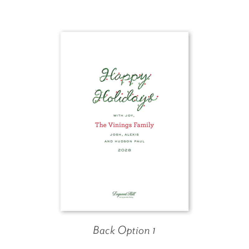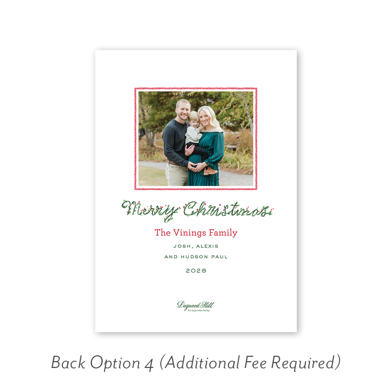 Select your order quantity from the dropdown menu below and check your total. Then click the Customize and Add to Cart button to create your card and add it to your cart.Want to add up to 4 photos on the back or inside of your card? Click here to add the fee to your cart.