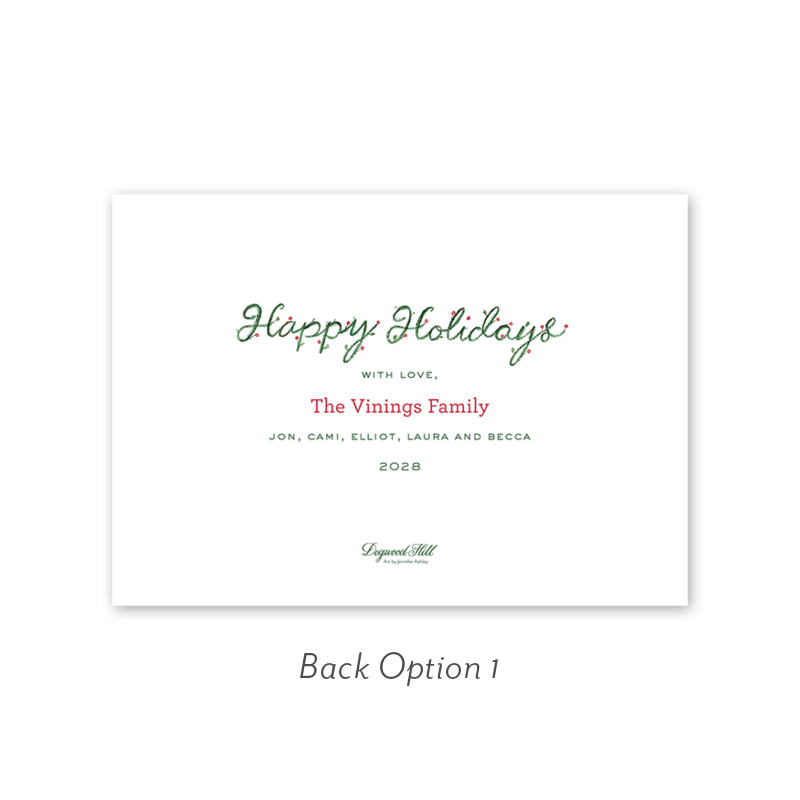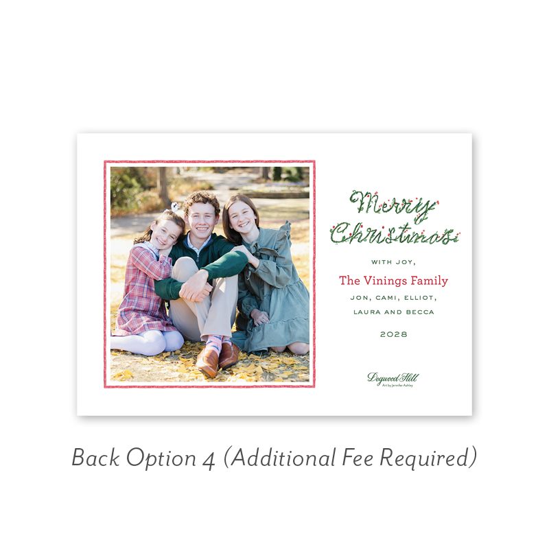 Want to add up to 4 photos on the back or inside of your card? Click here to add the fee to your cart.