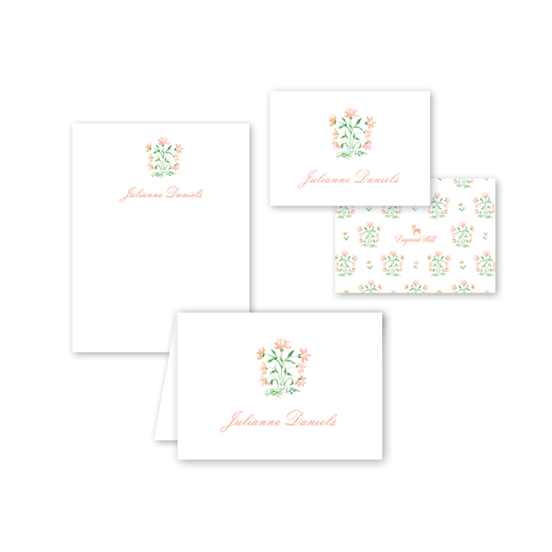 25 personalized notecards sized 3.5 x 4.875 inches folded on 120 lb Mohawk Eggshell White Paper