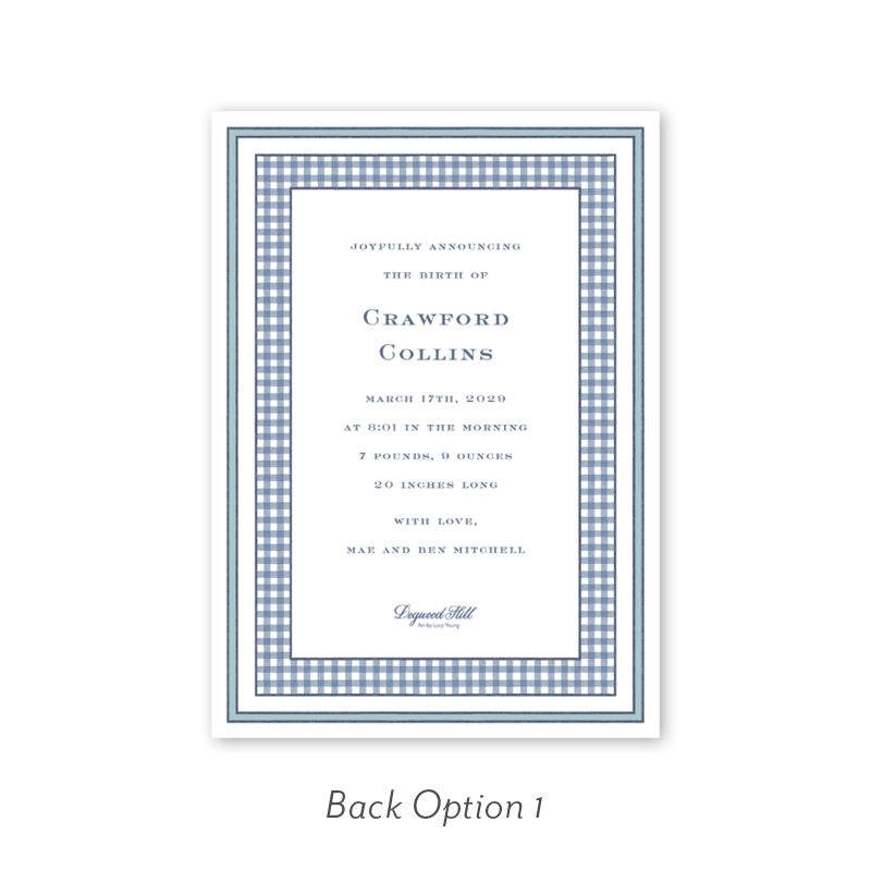 Maison dé Frédéric Gingham Blue Border Birth Announcement