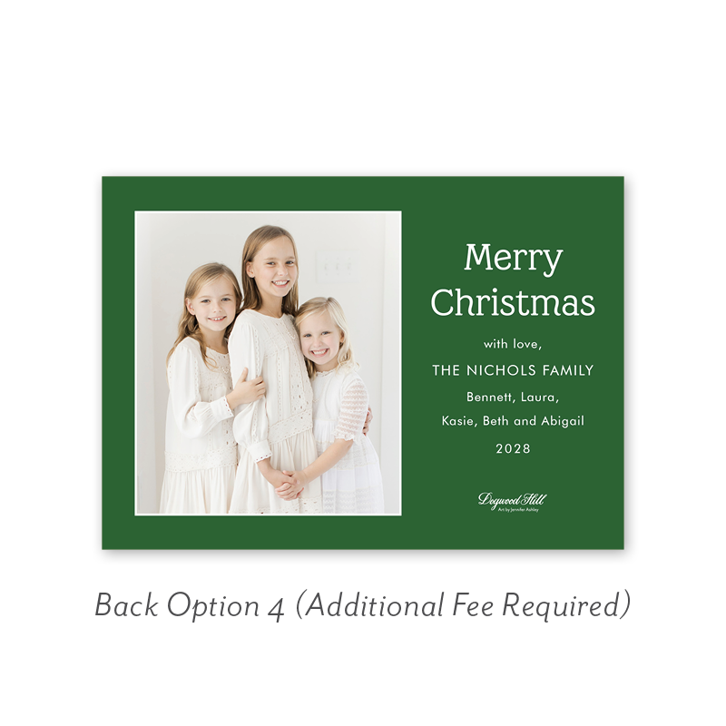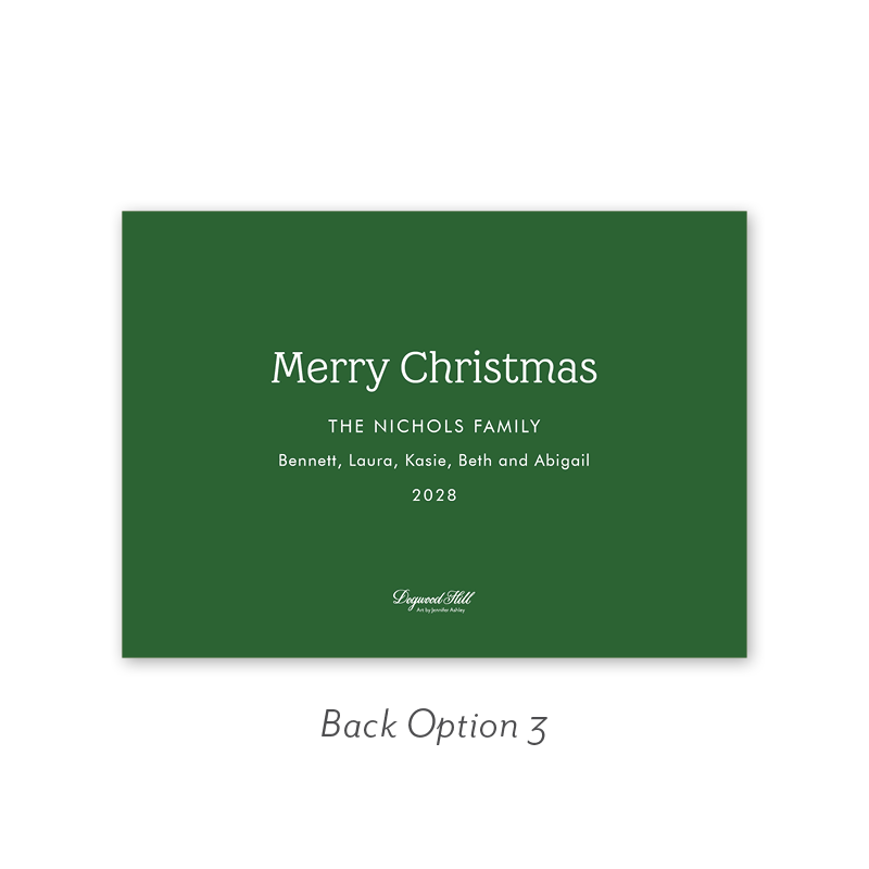 Select your order quantity from the dropdown menu below and check your total. Then click the Customize and Add to Cart button to create your card and add it to your cart.Want to add up to 4 photos on the back or inside of your card? Click here to add the fee to your cart.